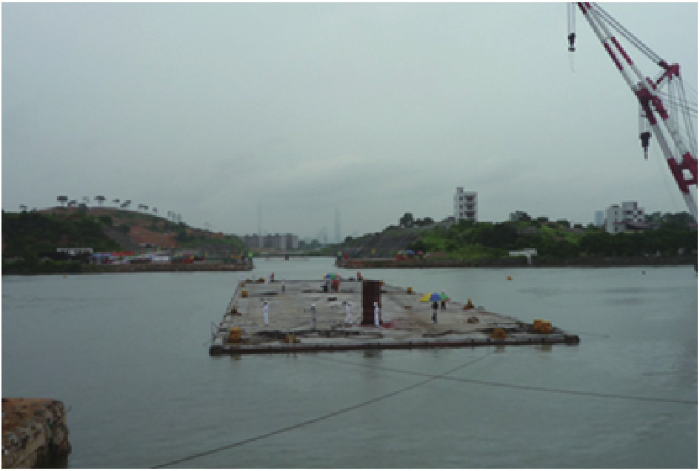 (3)在沉管法隧道方面,開(kāi)發(fā)了移動(dòng)干塢管節(jié)預(yù)制和浮運(yùn)、沉放技術(shù),建立了海上大型人工島構(gòu)筑技術(shù),創(chuàng)新了海中深埋、長(zhǎng)大沉管隧道修建技術(shù),在高水位差、大流速的江河中游修建了大型沉管隧道。