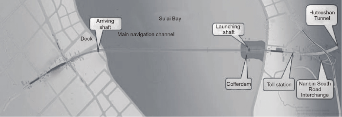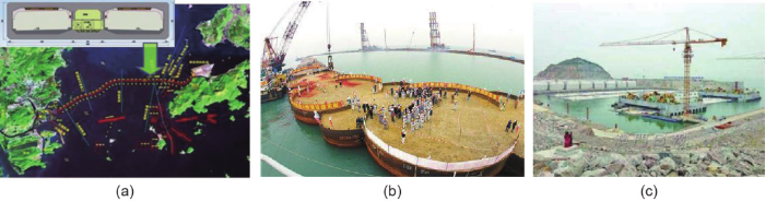 圖15 港珠澳通道沉管隧道的平面、筑島圍堰、管節(jié)浮運(yùn)圖