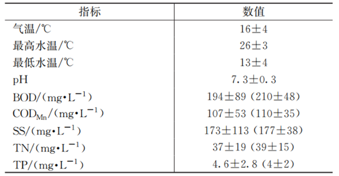 表1 2016年污水處理廠進(jìn)水水質(zhì)(括號(hào)內(nèi)為設(shè)計(jì)值)