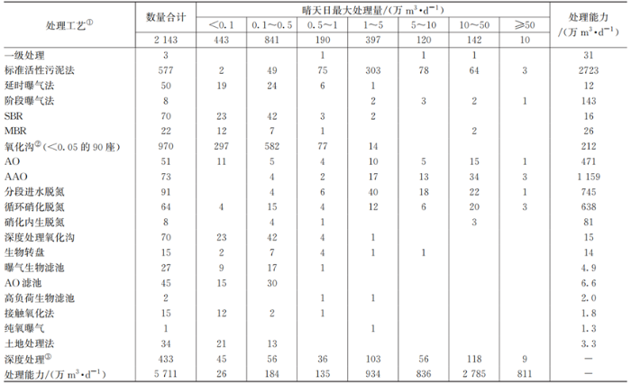注:①多次計(jì)算同一個(gè)污水處理廠使用多種處理方式。