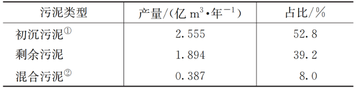 注:①初沉污泥包括對(duì)雨水一級(jí)處理產(chǎn)生的污泥;②混合指污泥初沉污泥和剩余污泥混合的情況。