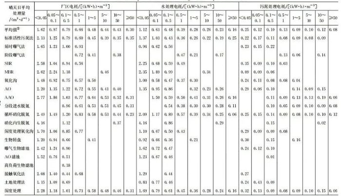⑦處理規(guī)模對(duì)噸水處理電耗的影響遠(yuǎn)大于工藝的影響。