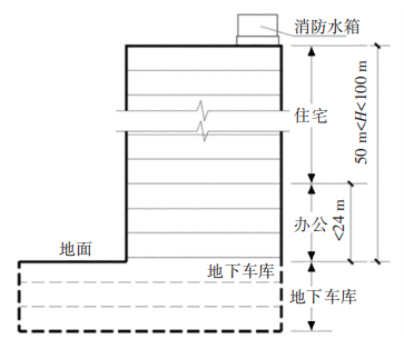 圖2 案例高層合建建筑剖面