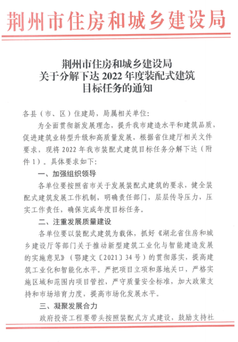 湖北荊州市2022年度裝配式建筑目標任務(wù)100萬㎡