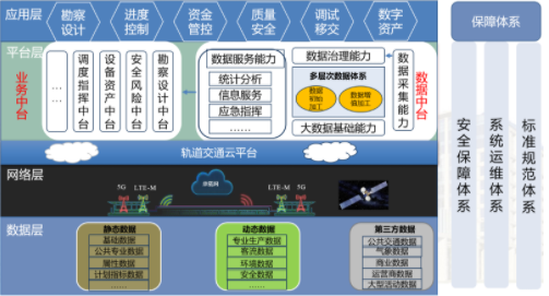 BIM全流程協(xié)同工作平臺(tái)分為:數(shù)據(jù)層、網(wǎng)絡(luò)層、云部署、中臺(tái)層、應(yīng)用層5層體系架構(gòu)(如圖2所示)。數(shù)據(jù)層涵蓋軌道交通相關(guān)的動(dòng)態(tài)數(shù)據(jù)、靜態(tài)數(shù)據(jù)、第三方數(shù)據(jù)等多源異構(gòu)數(shù)據(jù),通過輕量化工具進(jìn)行數(shù)據(jù)的抽取、治理、歸集,實(shí)現(xiàn)可視化動(dòng)態(tài)瀏覽;網(wǎng)絡(luò)層綜合5G(第五代移動(dòng)通信技術(shù))、LTE-M(基于長(zhǎng)期演進(jìn)的物聯(lián)網(wǎng)技術(shù))等傳輸技術(shù),搭建承載網(wǎng)為各類應(yīng)用提供數(shù)據(jù)傳輸通道,綜合承載各項(xiàng)業(yè)務(wù),保證各類信息的下發(fā)和上傳;云部署基于北京軌道交通建設(shè)云,向各業(yè)務(wù)應(yīng)用提供計(jì)算資源、存儲(chǔ)資源、網(wǎng)絡(luò)資源、安全防護(hù)以及運(yùn)維服務(wù),云平臺(tái)系統(tǒng)架構(gòu)采用安全生產(chǎn)網(wǎng)、內(nèi)部管理網(wǎng)、外部服務(wù)網(wǎng)三網(wǎng)體系結(jié)構(gòu),實(shí)現(xiàn)“網(wǎng)間隔離、網(wǎng)內(nèi)防護(hù)”的統(tǒng)一防護(hù);中臺(tái)層提供數(shù)據(jù)中臺(tái)、業(yè)務(wù)中臺(tái);應(yīng)用層以多專業(yè)正向協(xié)同設(shè)計(jì)為出發(fā)點(diǎn)、以進(jìn)度控制為主線、資金管控為基礎(chǔ),施工安全管理為根本,質(zhì)量管理為導(dǎo)向,調(diào)試移交為依托,數(shù)字資產(chǎn)為目標(biāo),實(shí)現(xiàn)對(duì)建設(shè)期合同、工期、安全、質(zhì)量、資金、資產(chǎn)等全生命周期項(xiàng)目全要素信息化管理進(jìn)行提升,打造覆蓋軌道交通全生命期的智慧建設(shè)應(yīng)用體系。