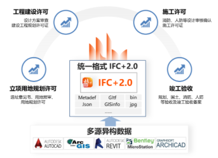 三是安全自主可控。采用國(guó)際通用BIM數(shù)據(jù)標(biāo)準(zhǔn)(IFC)+自主格式,滿足自主可控和與國(guó)際標(biāo)準(zhǔn)接軌的雙重需求。該數(shù)據(jù)格式實(shí)現(xiàn)數(shù)據(jù)模型自主可控的同時(shí),也為未來國(guó)產(chǎn)設(shè)計(jì)端預(yù)留接口,同時(shí),基于自主BIM圖形引擎,實(shí)施云端審查,便利用戶安全易用。