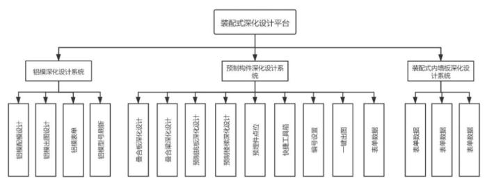 2.在軟件功能架構(gòu)設(shè)計(jì)方面,平臺(tái)包含了裝配式建筑設(shè)計(jì)的三大系統(tǒng),預(yù)制構(gòu)件深化設(shè)計(jì)系統(tǒng)共有9個(gè)模塊,27個(gè)功能,鋁模深化設(shè)計(jì)系統(tǒng)共有4個(gè)模塊,21個(gè)功能,裝配式建筑內(nèi)墻板深化設(shè)計(jì)系統(tǒng)共有3個(gè)模塊,8個(gè)功能,可以實(shí)現(xiàn)快速建模、一鍵出圖、一鍵生成物料清單表等功能。