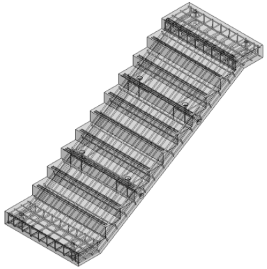 預(yù)制樓梯放置完畢后,通過預(yù)制構(gòu)件深化設(shè)計(jì)系統(tǒng)中樓梯配筋功能,對(duì)預(yù)制樓梯進(jìn)行自動(dòng)配筋(如圖10所示)。