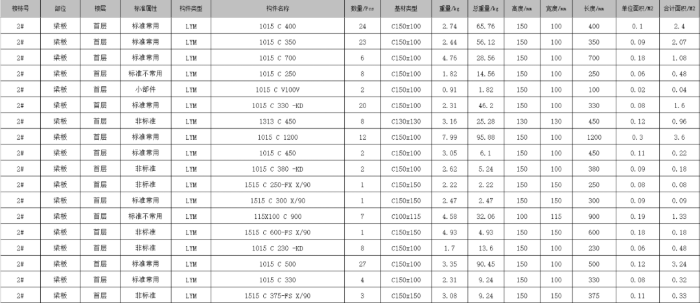(3)出圖及物料清單。在完成本項(xiàng)目的預(yù)制構(gòu)件深化設(shè)計(jì)后,設(shè)計(jì)人員通過預(yù)制構(gòu)件深化設(shè)計(jì)系統(tǒng)的一鍵出圖功能及物料清單功能,對(duì)模型中的所有預(yù)制構(gòu)件及平面進(jìn)行出圖(如圖11所示),并導(dǎo)出本項(xiàng)目的物料清單表(如圖12所示)。根據(jù)導(dǎo)出的圖紙及清單直接通過智能生產(chǎn)管理平臺(tái)對(duì)接構(gòu)件廠,完成生產(chǎn)構(gòu)件詳圖交付。