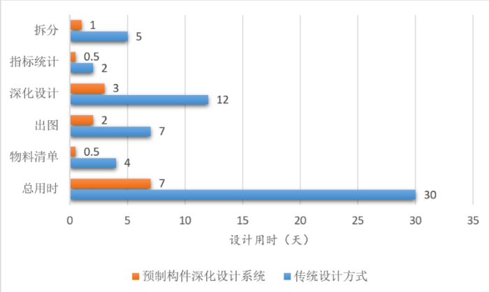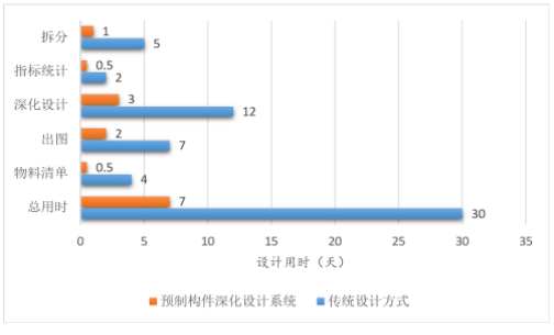 預(yù)制構(gòu)件深化設(shè)計(jì)系統(tǒng)設(shè)計(jì)時(shí)間與傳統(tǒng)設(shè)計(jì)時(shí)間效率對(duì)比,如圖20所示。