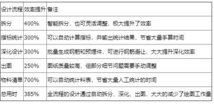 預(yù)制構(gòu)件深化設(shè)計(jì)系統(tǒng)相較傳統(tǒng)設(shè)計(jì)方式效率提升表,如表1所示。