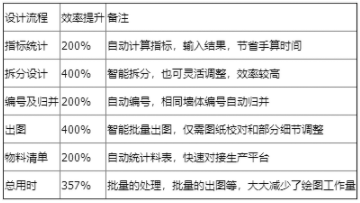 內(nèi)墻板深化設(shè)計(jì)系統(tǒng)效率分析表 表2