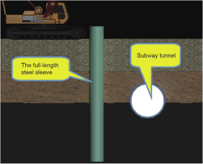 成孔后澆筑鋼筋混凝土工程樁,初凝后緩慢地拔出鋼護(hù)筒的同時(shí)從外側(cè)注入純黏土漿。在樁周邊與地層之間形成泥漿層。減少工程樁沉降時(shí)對(duì)地層的影響,從而極大地降低對(duì)地鐵運(yùn)營隧道的不利影響。