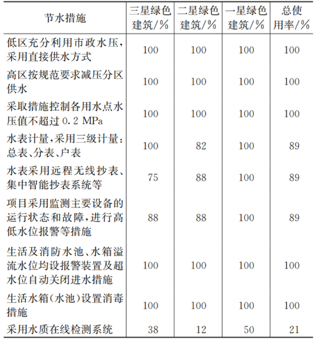 表2 供水系統(tǒng)節(jié)水措施在受調(diào)研建筑中的使用率