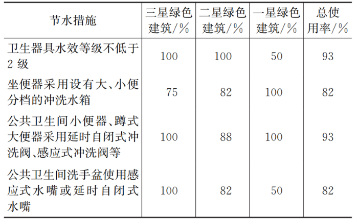 節(jié)水型衛(wèi)生器具在受調(diào)研建筑中的使用率如表3所示。
