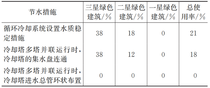 表5 冷卻塔節(jié)水措施在受調(diào)研建筑中的使用率