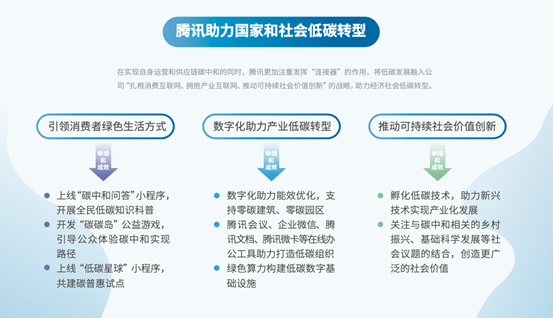 在《報(bào)告》中騰訊提出“不晚于2030年,實(shí)現(xiàn)自身運(yùn)營(yíng)及供應(yīng)鏈的全面碳中和。同時(shí),不晚于2030年,實(shí)現(xiàn)100%綠色電力”的目標(biāo),同時(shí)在做好自身碳中和之外,通過助力產(chǎn)業(yè)、引導(dǎo)消費(fèi)者、推動(dòng)技術(shù)發(fā)展等方式不斷助力國(guó)家“雙碳”目標(biāo)的實(shí)現(xiàn)。