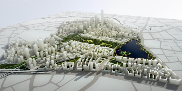 ▲ 海口市大英山新城市中心區(qū)路網(wǎng)(中國建科所屬中國市政工程華北設(shè)計(jì)研究總院有限公司)