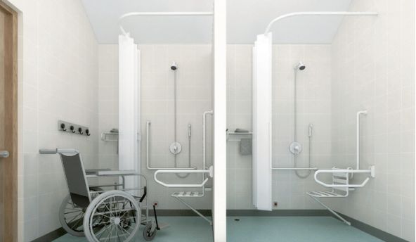 由于冰壺比賽冰面清潔要求較高,經(jīng)過對國家冰壺隊的調(diào)研發(fā)現(xiàn),存在生活輪椅與比賽輪椅混用的情況,在進入冰面之前,需要花費很多時間對輪椅進行細致的清潔,效率過低。因此,在運動員入口處加設(shè)一個輪椅換乘廳,方便運動員將生活輪椅直接換成比賽輪椅,免除反復清潔的環(huán)節(jié),提高比賽訓練效率。