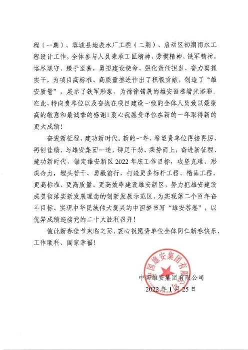 與中國雄安集團(tuán)有限公司攜手并肩服務(wù)大局,我們得到了肯定,倍受鼓舞;能夠成為雄安的建設(shè)者,我們感到無比的驕傲和自豪。