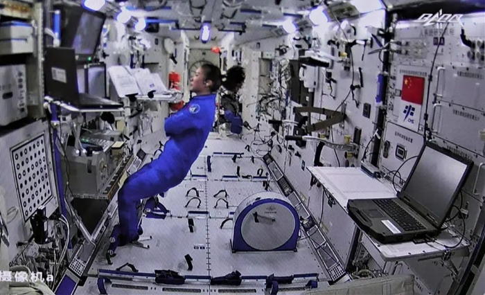 2021年12月26日,在北京航天飛行控制中心拍攝的神舟十三號航天員王亞平在核心艙內(nèi)工作場景。 新華社記者 郭中正/攝