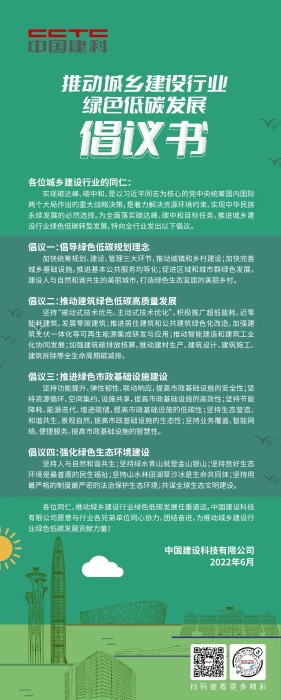 作為勘察設計領域領軍企業(yè)、科技型央企,中國建設科技集團(簡稱“中國建科”)始終堅持綠色低碳發(fā)展理念,以科技賦能、標準引領、示范引領推動全域業(yè)務綠色化發(fā)展。為全面落實碳達峰、碳中和目標任務,推進城鄉(xiāng)建設行業(yè)綠色低碳轉型發(fā)展,在第32個全國節(jié)能宣傳周來臨之際,中國建科發(fā)出倡議,號召社會各界一起踐行綠色低碳,共建美麗家園。