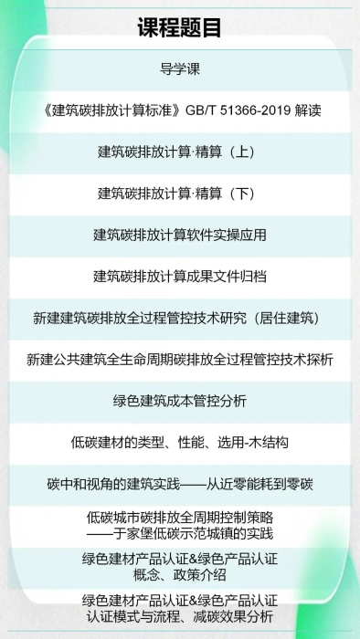 通過(guò)本系列課程的學(xué)習(xí),讓城鄉(xiāng)建設(shè)領(lǐng)域相關(guān)從業(yè)人員、在校大學(xué)生切實(shí)有效地掌握國(guó)家有關(guān)建筑碳排放方針政策、建筑碳排放計(jì)算方法、建筑全生命周期碳排放全過(guò)程管控技術(shù)與咨詢服務(wù),有力有序有效做好建筑碳減排工作,為推進(jìn)城鄉(xiāng)建設(shè)綠色發(fā)展培養(yǎng)專業(yè)技術(shù)力量。