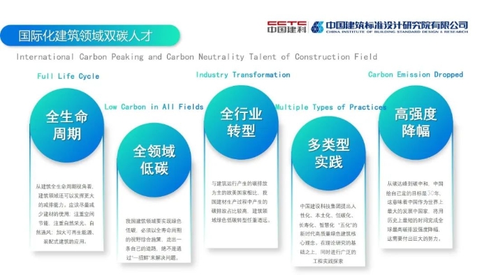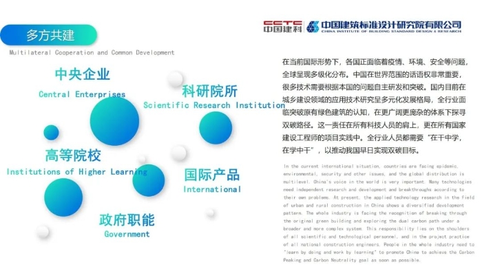 中國建筑標(biāo)準(zhǔn)設(shè)計(jì)研究院在“十四五”戰(zhàn)略規(guī)劃指導(dǎo)下,積極研究建筑業(yè)多層級減碳的技術(shù)路線,將六十余年的科研經(jīng)驗(yàn)進(jìn)行成果轉(zhuǎn)化,面向全國提供減碳綜合服務(wù)。面對國際化人才的迫切需求,依托城鄉(xiāng)建設(shè)領(lǐng)域?qū)I(yè)技術(shù)人才優(yōu)勢,開展雙碳國際人才的研究和培訓(xùn)體系搭建。我院會繼續(xù)深度參與中英兩國的科技合作,推動技術(shù)進(jìn)步、成就建筑夢想,攜手共建雙碳未來!