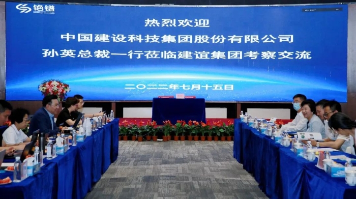 7月15日,中國建科黨委副書記、總裁孫英一行赴建誼集團與建誼集團董事長張鳴舉行會談,雙方就鋼結構裝配式建筑體系的數(shù)字化研發(fā)實踐和建筑產業(yè)的數(shù)字化、工業(yè)化開展了深入交流。建誼集團總裁岳潤生,副總裁、銫鐠科技有限公司CEO蒲育強,平臺研究院負責人肖彧潔,董事長助理、綜合市場負責人靳少華,中國建科黨委委員、副總裁樊金龍,辦公室主任魏巍,企業(yè)發(fā)展部副主任金曉帆,中國建科所屬標準院副總經理李兵,中國院科研與標準管理部主任張哲,國住人居總經理婁霓,中城院環(huán)境董事長劉濤,中設數(shù)字總經理助理石磊及雙方有關技術人員一同參加。
