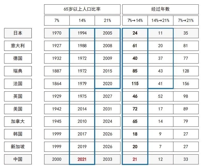 1 世界典型國(guó)家老齡化進(jìn)展速度比較