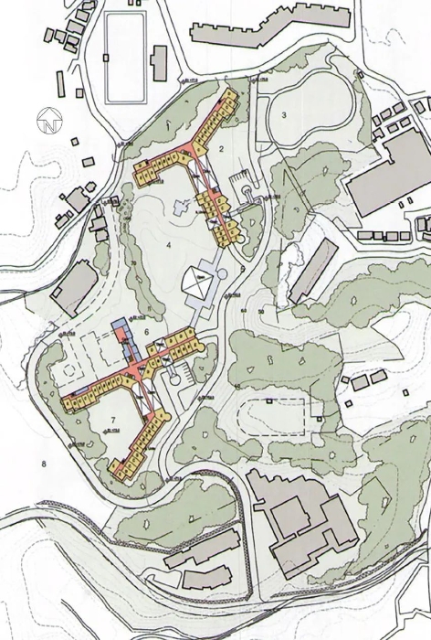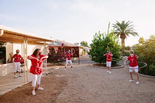 1960年,美國(guó)興起開發(fā)建設(shè)的太陽(yáng)城(Sun City)是居住康養(yǎng)型老年住區(qū)早期實(shí)踐中最典型的代表(圖3)。住區(qū)建設(shè)選址在環(huán)境優(yōu)美的郊區(qū),建筑多以低層住宅為主,成組團(tuán)式布置,便于管理和后期運(yùn)營(yíng)與擴(kuò)建。經(jīng)過(guò)六十余年的發(fā)展,太陽(yáng)城住區(qū)系列也在不斷改革創(chuàng)新。例如:老年人可選擇購(gòu)買或租賃房屋及居住的產(chǎn)品,其中“家庭式”住房單元可緩解親緣割裂的問(wèn)題;并增加住區(qū)內(nèi)醫(yī)療照護(hù)設(shè)施,以滿足高齡醫(yī)療需求等(圖4)。