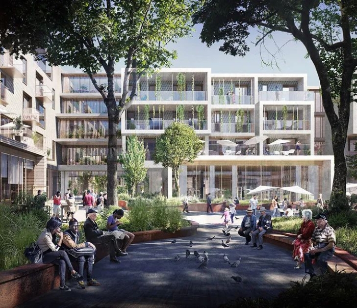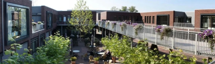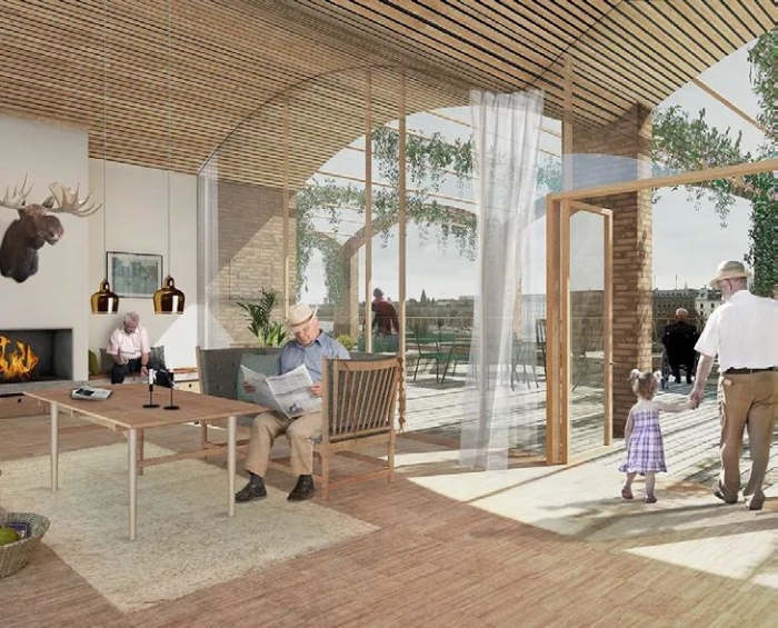 歐洲模式中,丹麥、荷蘭等國(guó)家的老年住區(qū)著力發(fā)展代際互助與混合居住住區(qū)建設(shè)模式。在住區(qū)中,由青年大學(xué)生等志愿者陪伴、照護(hù)老人,通過(guò)互助實(shí)現(xiàn)了兩代人的陪伴與共同成長(zhǎng)。位于丹麥哥本哈根的The Future S?lund世代住區(qū),致力于建造多世代、多齡化居住的混合式住區(qū),項(xiàng)目包括老年住房、青年公寓和老年照護(hù)公寓,以及日間護(hù)理中心、商店和咖啡館等公共服務(wù)設(shè)施,中央庭院被稱為“世代廣場(chǎng)”,在公共空間里,老年人、年輕人和孩子都能夠自如地溝通交流。項(xiàng)目以社會(huì)福祉、幸福安全和功能空間為建設(shè)標(biāo)準(zhǔn),既提升了老年人生活質(zhì)量,又解決了養(yǎng)老問(wèn)題(圖5)。