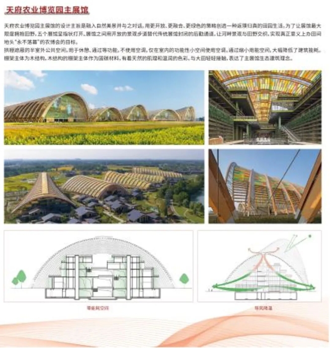 中國建筑設(shè)計研究院有限公司對成都天府農(nóng)業(yè)博覽園主展館、張家港金港文化中心、北京平安大街更新等項目進(jìn)行了展示。展示內(nèi)容充分體現(xiàn)了中國工程院院士、中國建科首席科學(xué)家、中國院總建筑師崔愷的 “綠色設(shè)計新美學(xué)”核心理念。