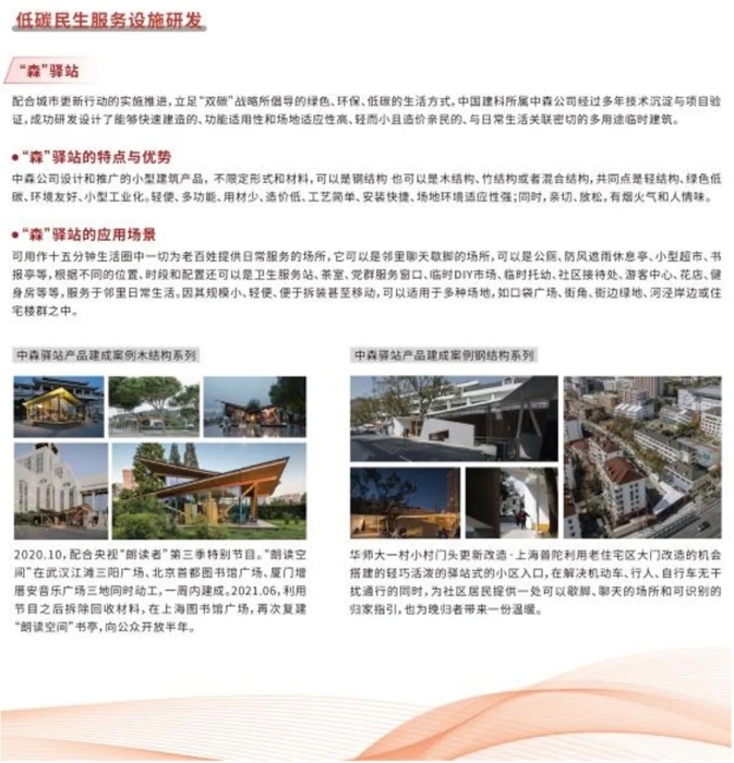 上海中森建筑與工程設(shè)計顧問有限公司專注于低碳建筑技術(shù)的研究與應(yīng)用,展出最新低碳產(chǎn)品研發(fā)成果、零碳技術(shù)設(shè)計案例以及低碳住區(qū)課題研究。中森公司秉承綠色、環(huán)保、低碳的生活方式,經(jīng)過多年技術(shù)積累和項目實踐,成功研發(fā)并設(shè)計出一種多用途臨時建筑。這種建筑具備快速建造的特點,功能適用性和場地適應(yīng)性極高;輕巧且成本可控,與人們的日常生活緊密相連;不受形式和材料的限制,既可以是鋼結(jié)構(gòu),也可以是木結(jié)構(gòu)、竹結(jié)構(gòu)或混合結(jié)構(gòu);綠色低碳、環(huán)境友好,并且實現(xiàn)了小型工業(yè)化生產(chǎn)。